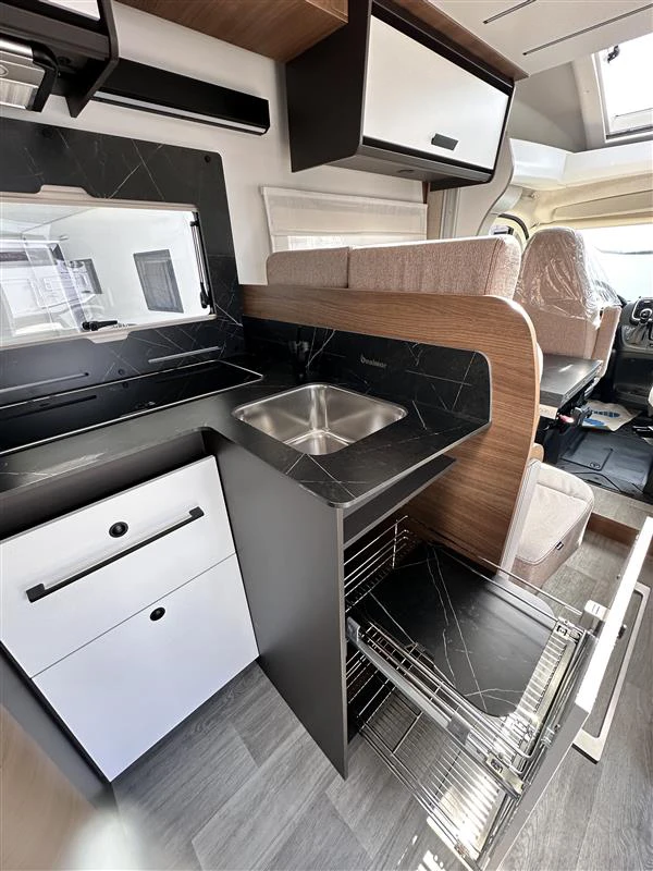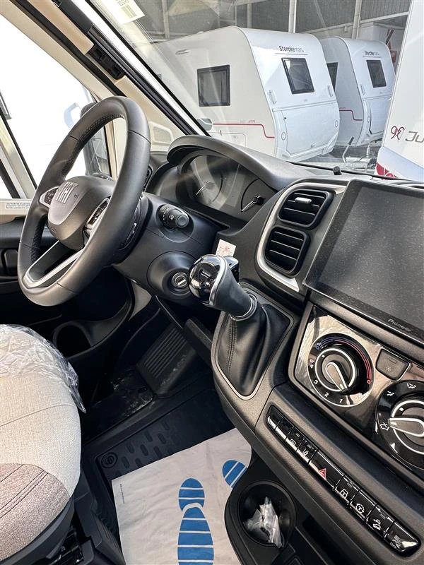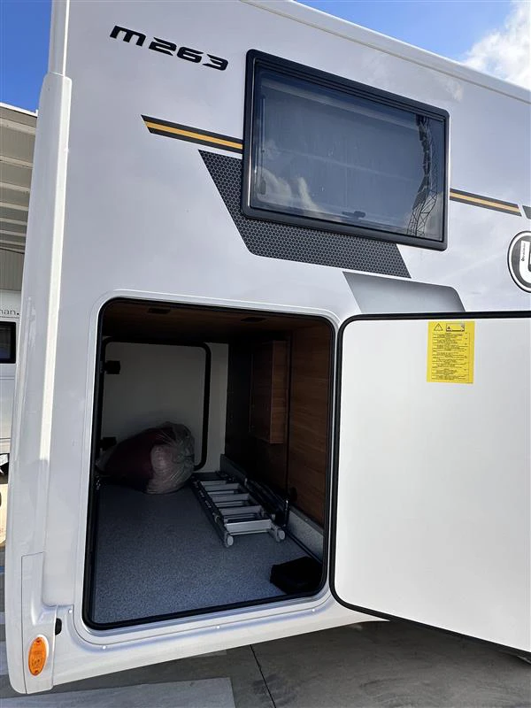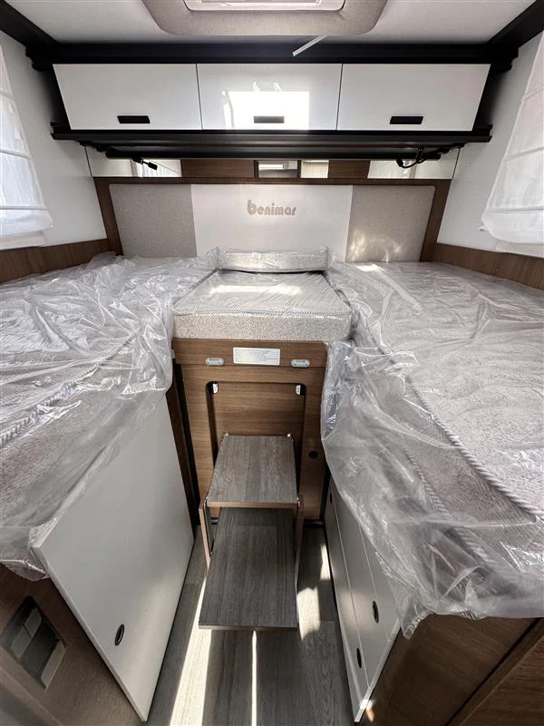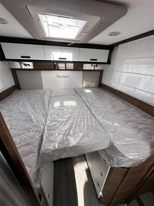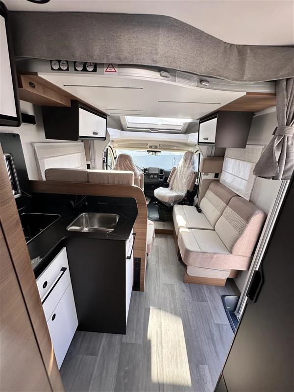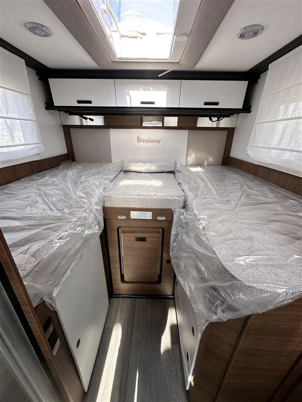 La Benimar Mileo 263 es una autocaravana perfilada moderna y muy versátil, diseñada para familias o grupos que buscan confort y funcionalidad en ruta. Destaca por su distribución con camas gemelas convertibles en cama grande y cama basculante eléctrica, junto con un amplio salón. Incluye PACK PLUS, que mejora notablemente el equipamiento de serie.
