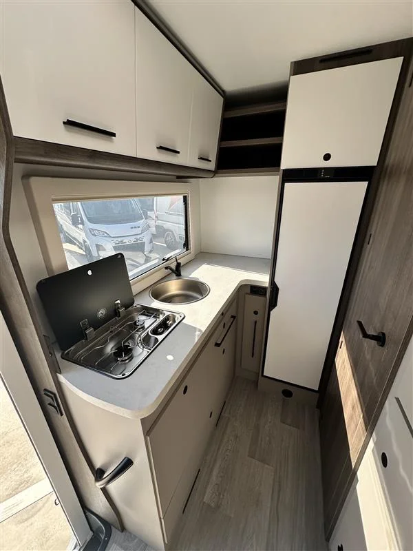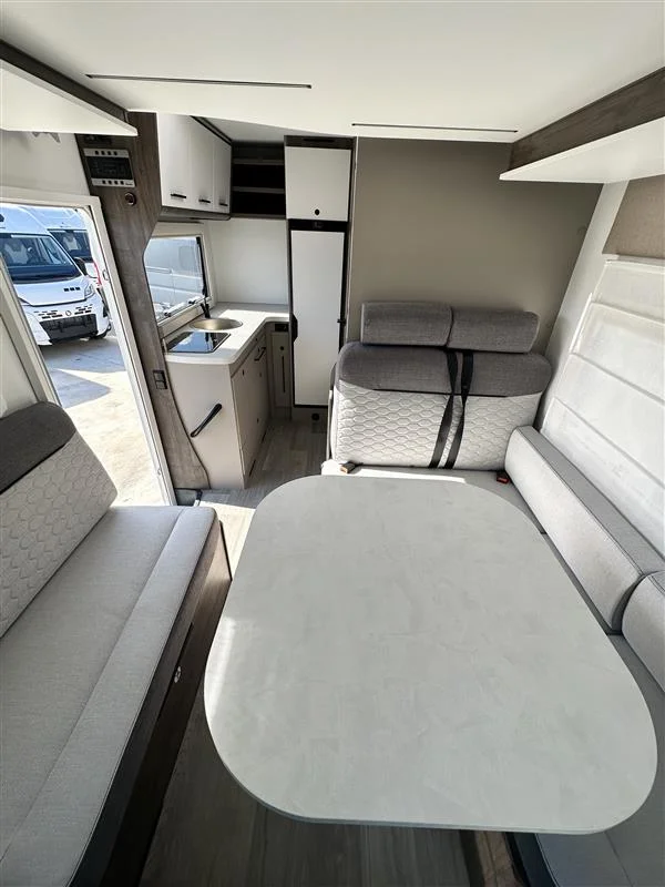 La Benimar Tessoro 481 2026 es una autocaravana perfilada compacta de casi 6 m, con Ambiente Denver y Pack plus. Equipado con motor Ford 165 cv y caja de cambios manual, ofrece una conducción fiable y agradable. Tiene posibilidades de comedor para 6 personas gracias a su salón en L convertible, además de dos camas de buen tamaño.