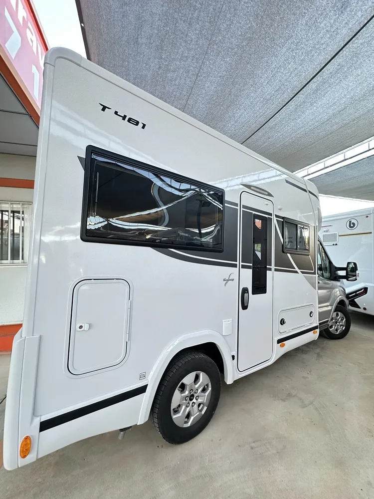 La Benimar Tessoro 481 es una autocaravana perfilada compacta de menos de 6 metros de longitud, construida sobre chasis Ford Euro 6, con 4 plazas para viajar y 4 para dormir.Viene equipada con el PACK NORTHAUTOKAPP.