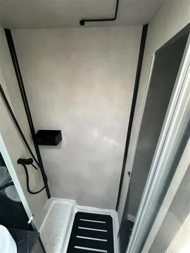 Baño completo con ducha independiente y espejo retroiluminado.