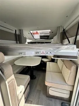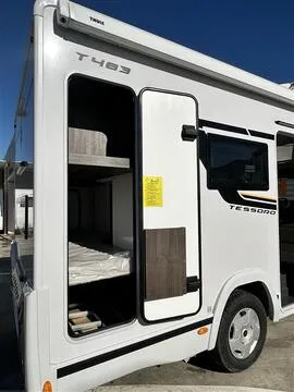 La Benimar Tessoro 483 es una autocaravana perfilada de la gama Tessoro que destaca por su equilibrio entre espacio interior, confort y maniobrabilidad en solo 6,59 m de longitud. Diseñada para familias o grupos de hasta 5 personas, combina funcionalidad con la calidad y fiabilidad del chasis Ford Euro 6 y motor de 165 CV y con el Pack Plus.