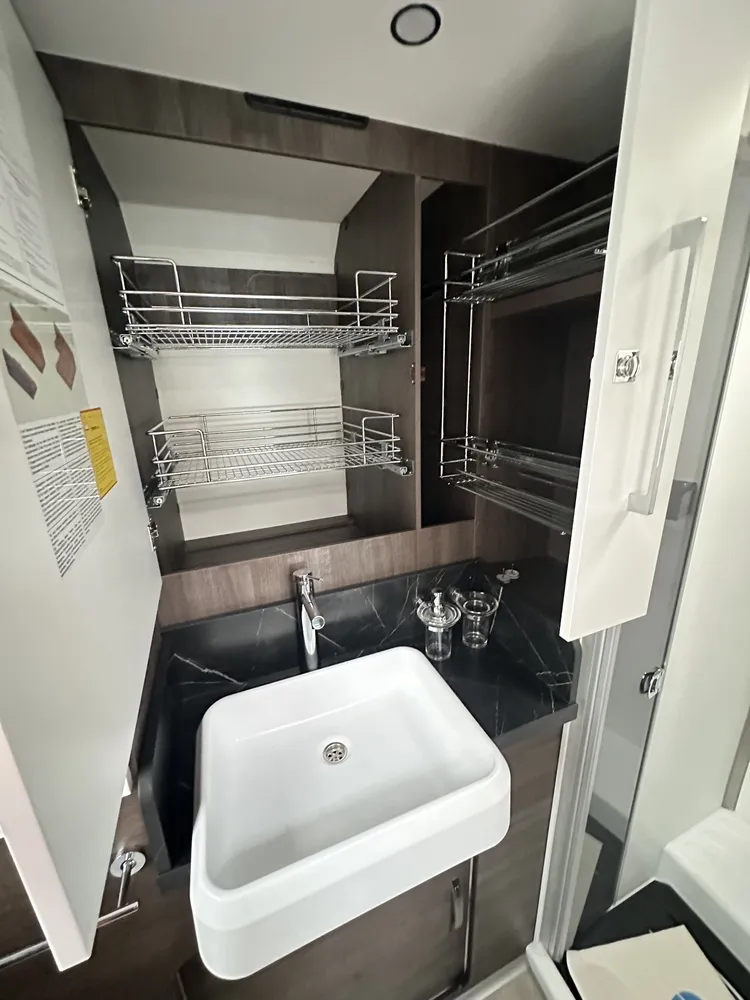 • Fregadero y placa de cocción de 2 fuegos encastrados con encendido eléctrico.