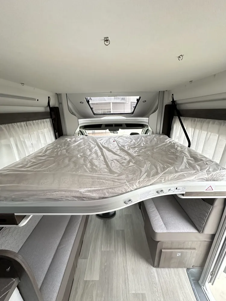 La Benimar Tessoro 488 2026 con motor FORD 165 CV manual y equipado con el Pack PLUS es una autocaravana perfilada ideal para familias y parejas que buscan espacio, tecnología y comodidad. Con salón tipo «face to face», cama eléctrica basculante y una amplia cocina, ofrece una experiencia completa.