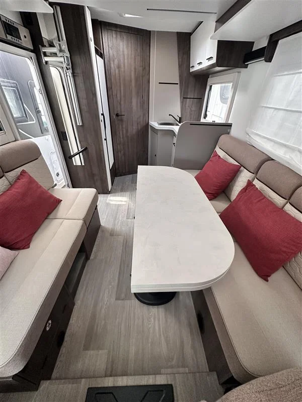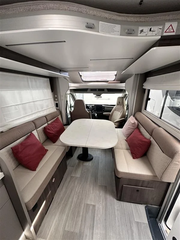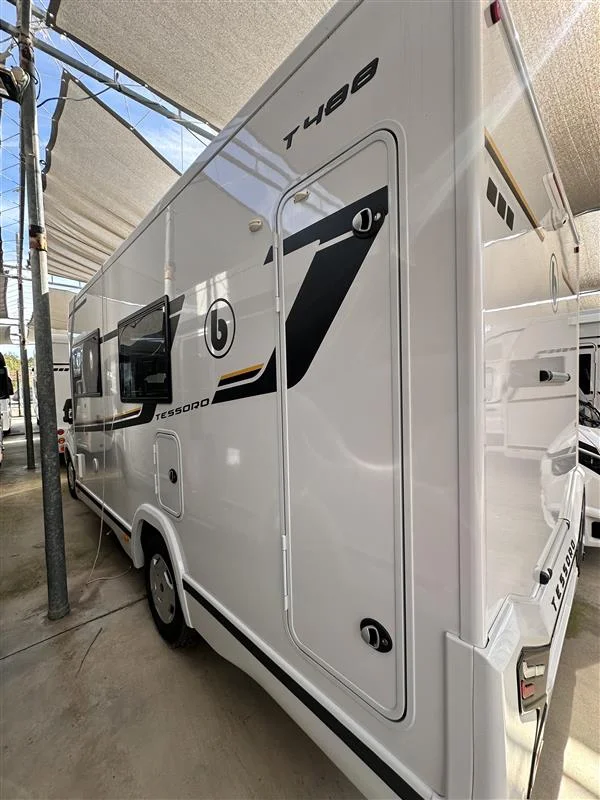 La Benimar Tessoro 488 2026 es una autocaravana perfilada familiar con gran salón “face-to-face”, cama basculante eléctrica de techo para 2 personas y un interior diseñado para ofrecer amplitud y confort en viajes largos o escapadas de fin de semana.