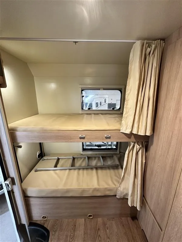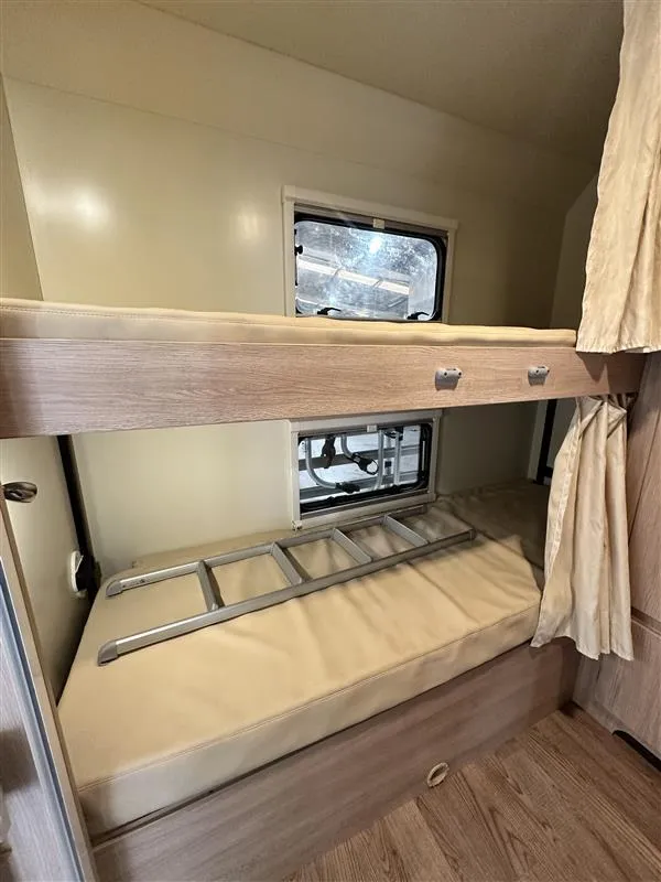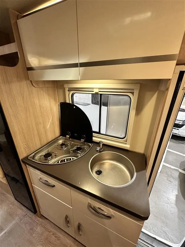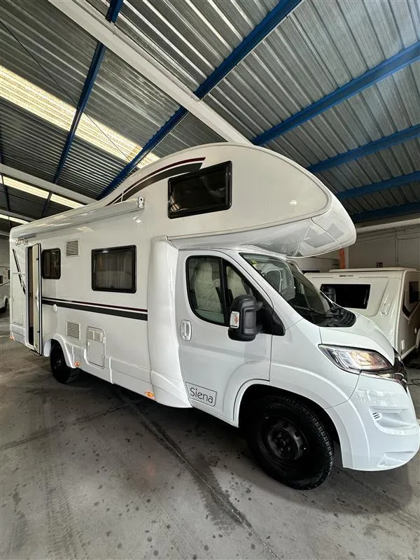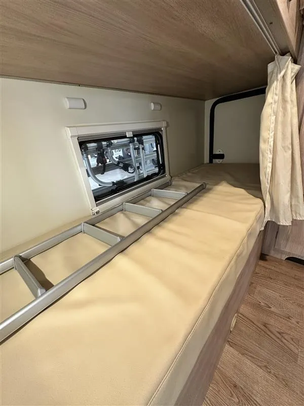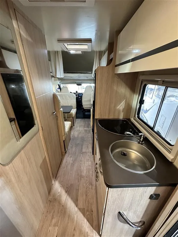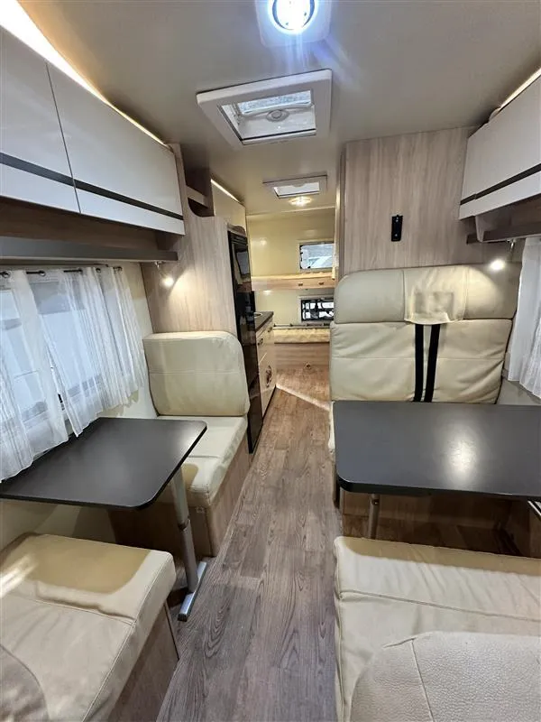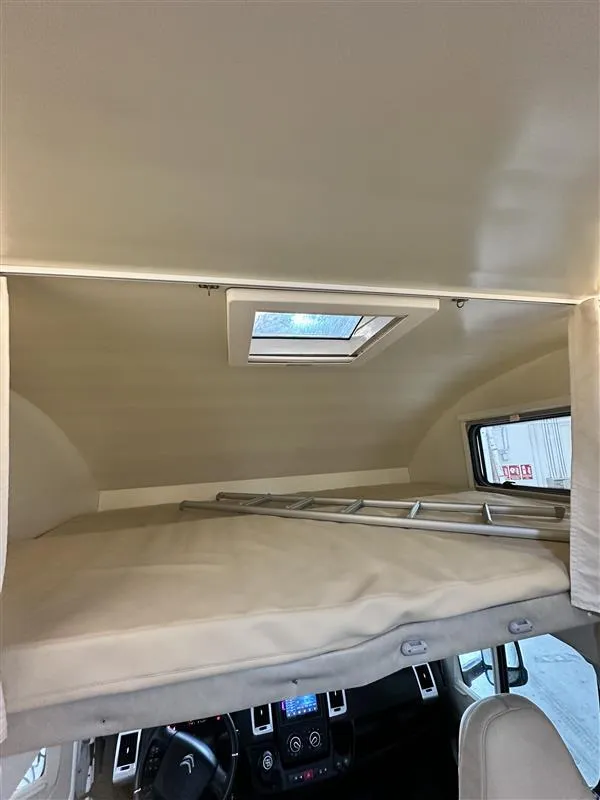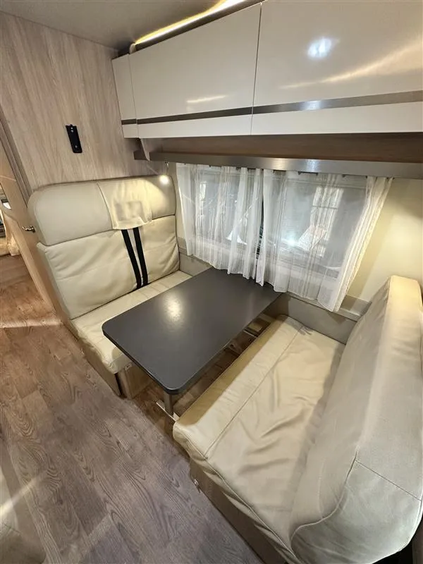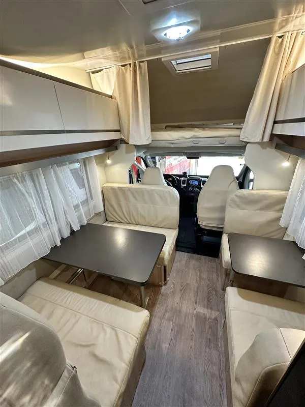 La Giottiline 435 Capuchina es una autocaravana familiar de siete plazas construida sobre chasis Citroën Jumper con motor 2.200 cc y 140 CV, ideal para viajes largos con familias o grupos grandes. Ofrece un diseño interior versátil con varias camas independientes y un comedor transformable. Su distribución maximiza el espacio sin comprometer confort ni prestaciones.