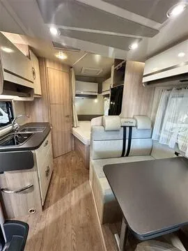 Autocaravana perfilada GiottLine Siena 330 Privilege sobre chasis Citroën 140 CV ideal para parejas o familias pequeñas. Compacta (~6 m), maniobrable y bien equipada con interior funcional, buena cama trasera tipo francesa, cama basculante frontal y capacidad para hasta 3-4 pernoctas y 4 personas viajando.