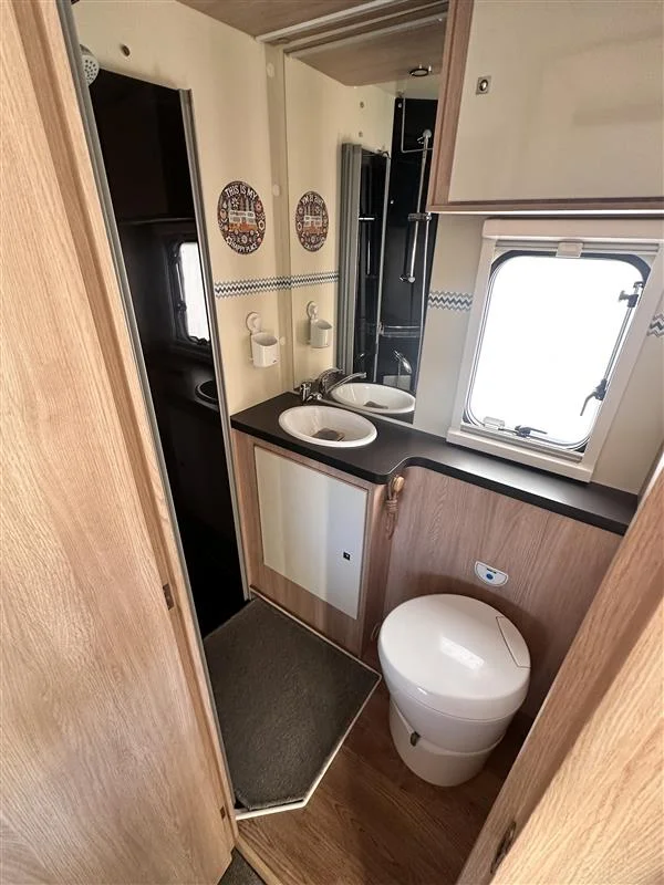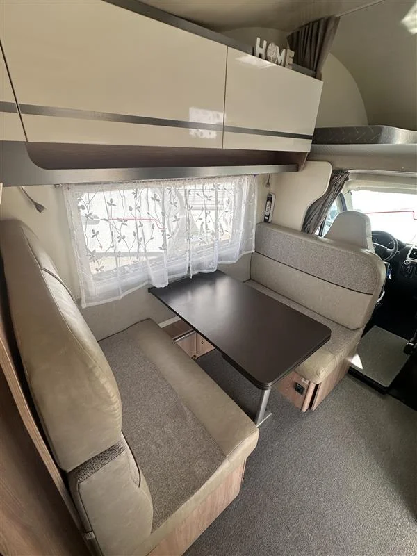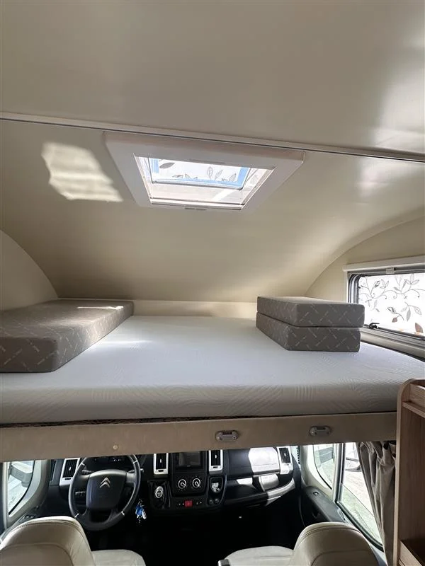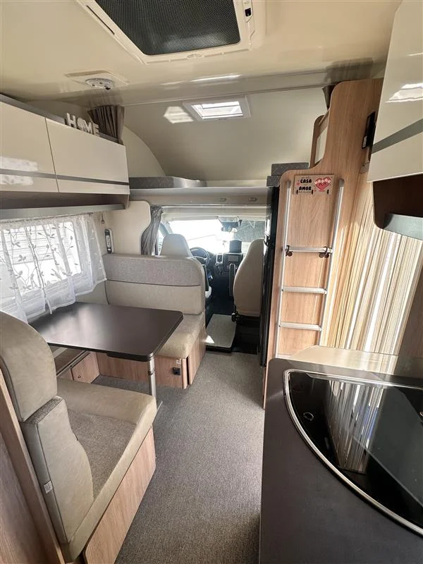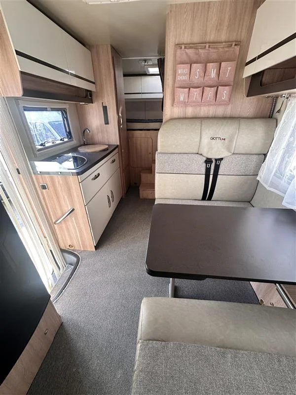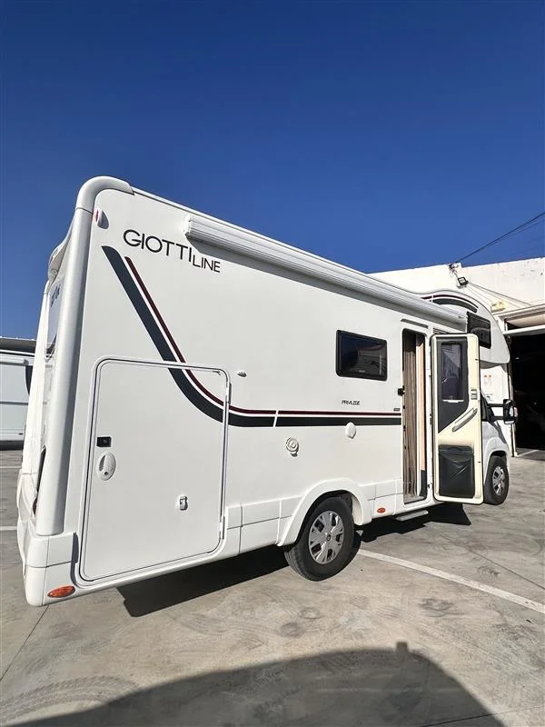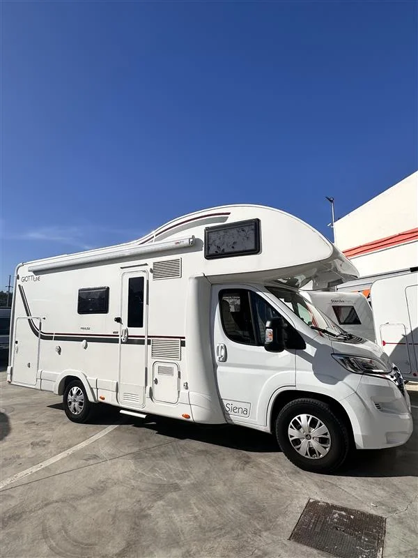 La Giottiline Siena 440 Capuchina del fabricante italiano Giottiline es una autocaravana familiar de casi 7m que destaca por su gran capacidad interior y versatilidad. Su distribución ofrece cama transversal trasera, cama doble en capuchina y salón convertible en cama, permitiendo alojar cómodamente hasta 6 personas.