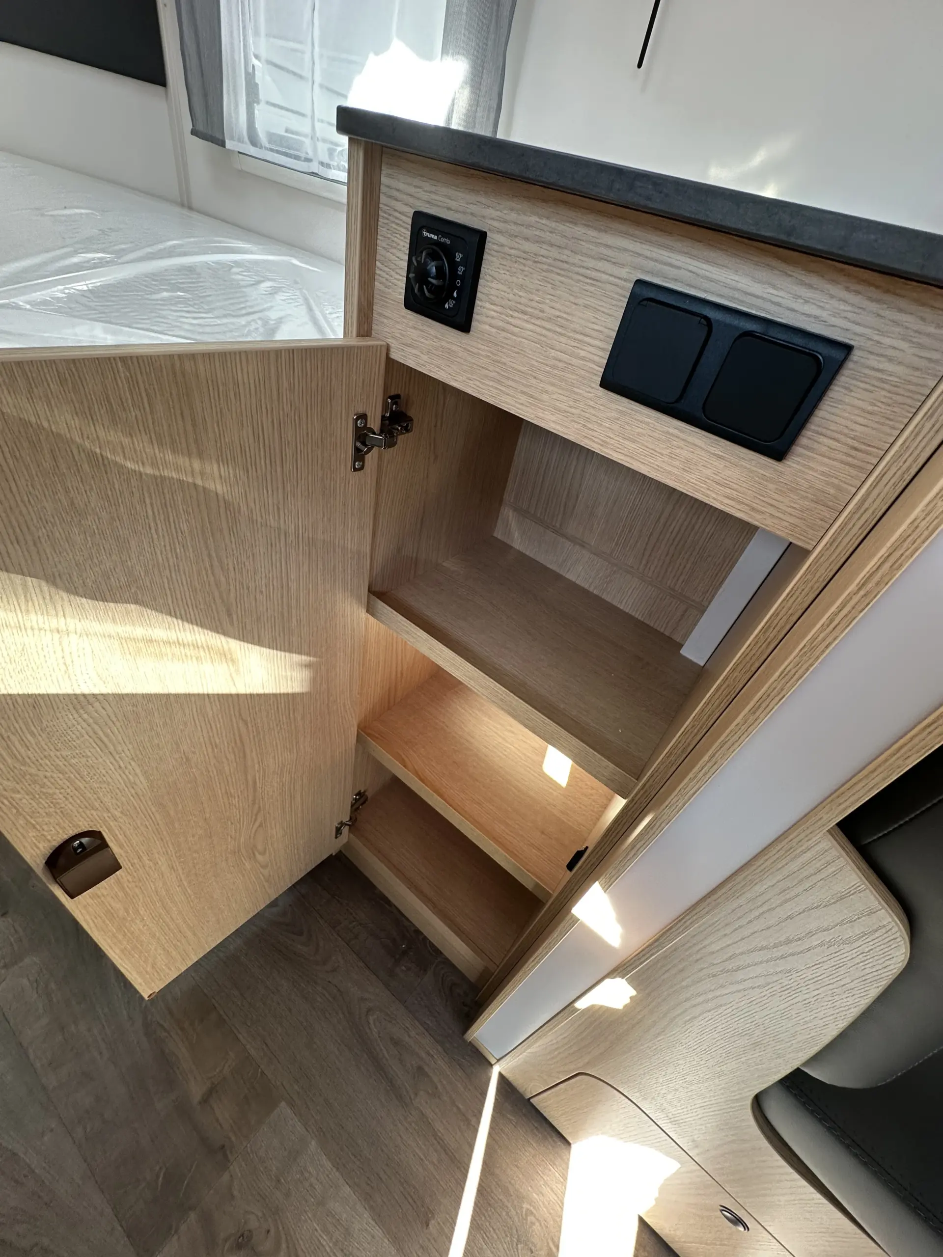 Tomas de corriente 230 V, 12 V, USB (varios puertos).