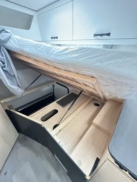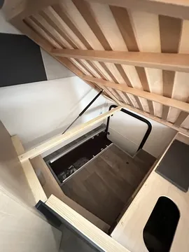 Cama basculante/dinette transformable: ubicada sobre salón.