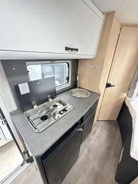 Cocina equipada con 2 fuegos encastrados (12 V + encendido eléctrico).