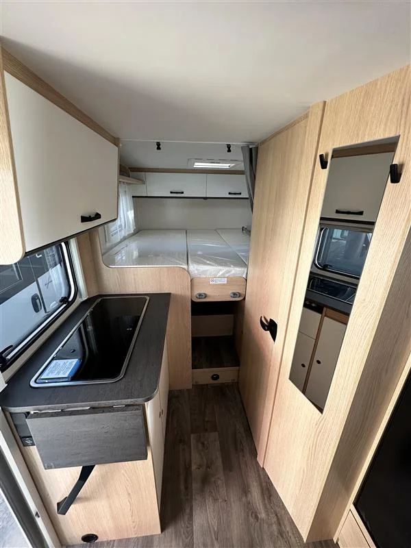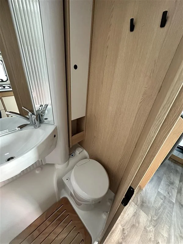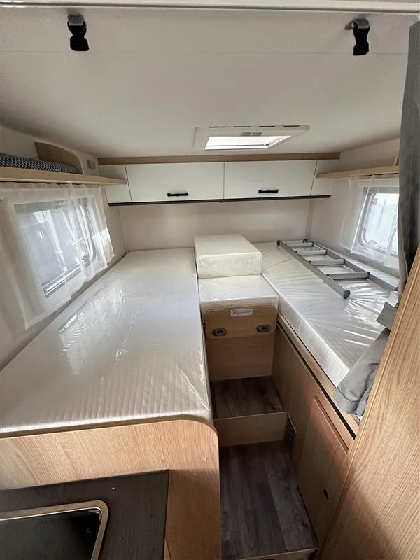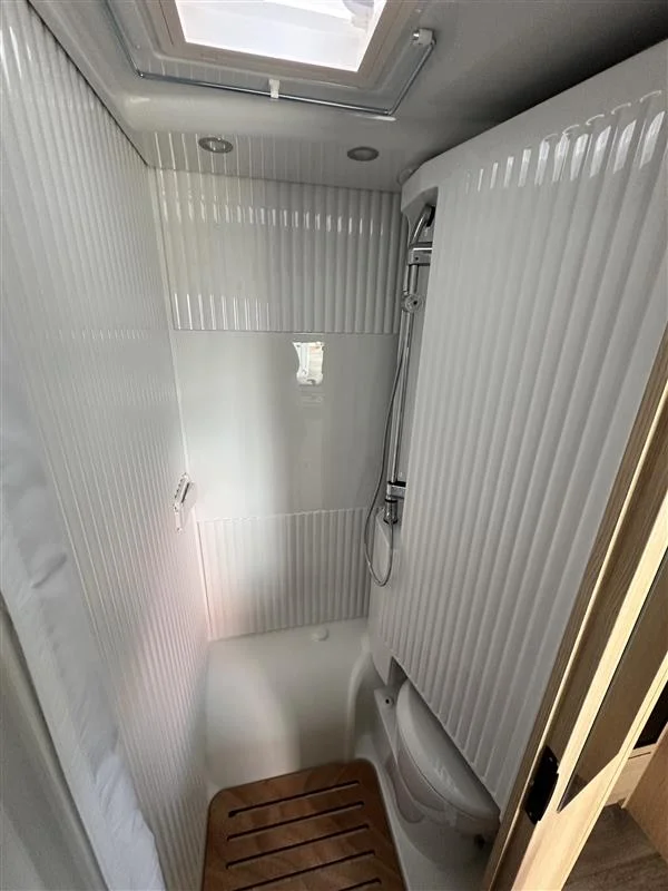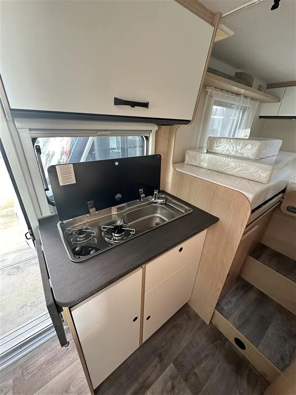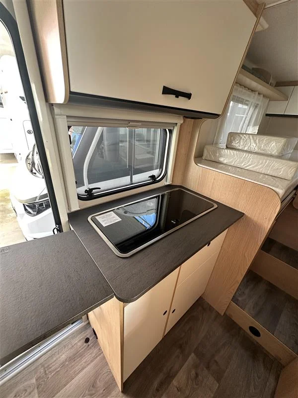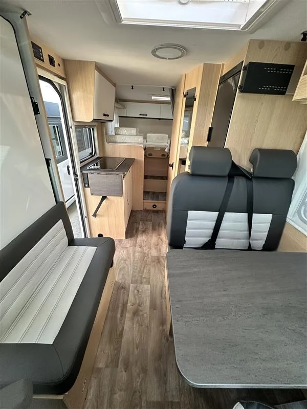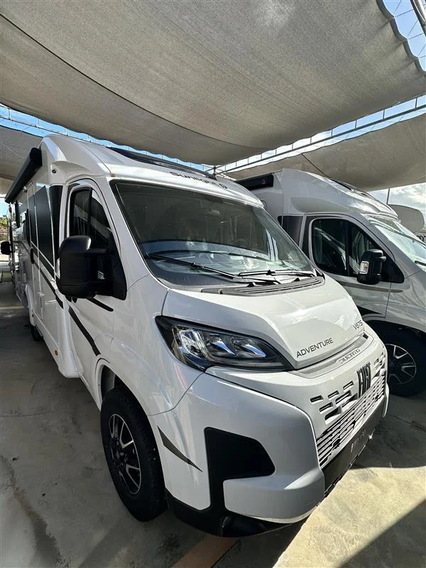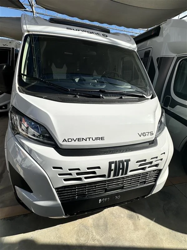 Autocaravana Sunlight V67S 2026 con motor Fiat Ducato 2.2 L de 140 CV y cambio manual. Compacta y funcional (6,98 m de largo), ideal para 4 personas tanto para viajar como para dormir. Equipada con toldo exterior y portabicicletas, perfecta para escapadas en pareja o familia con el máximo confort.