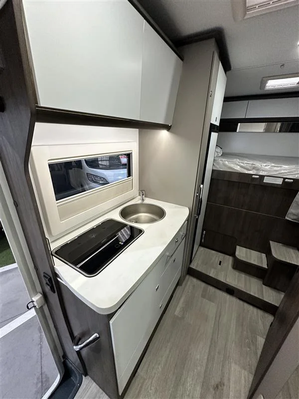 La Benimar Sport 344 UP es una autocaravana capuchina familiar de la gama Sport diseñada para viajes con hasta 6 personas, con distribución interior amplia y funcional. Pertenece al concepto UP, que destaca por ofrecer equipamiento completo de serie y estar lista para viajar sin necesidad de accesorios adicionales.