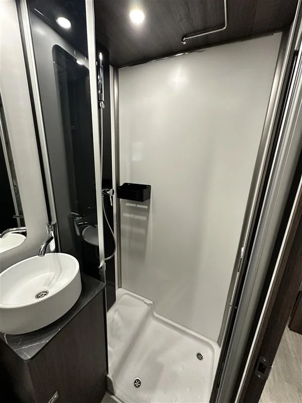Cuarto de aseo completo con ducha independiente y espejo retroiluminado