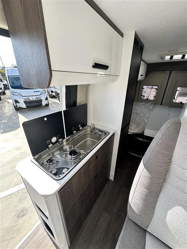 El Benimar Benivan 160 Plus 2026 es una furgoneta camper equipada industrialmente sobre chasis Fiat Ducato Euro 6 con motor 2.2 l y 140 CV de potencia, diseñada para ofrecer confort y funcionalidad en formato compacto. Destaca por su buena maniobrabilidad, equipamiento interior moderno con tapicería Palermo con Pack Plus, camas gemelas convertibles en cama grande y espacio bien aprovechado para vida y viaje. Su distribución ofrece zona comedor para 4, cocina funcional y baño completo con ventana. Por ser modelo de 2026, incorpora detalles de confort y acabado que mejoran la experiencia de usuario en rutas y estancias.