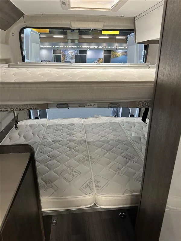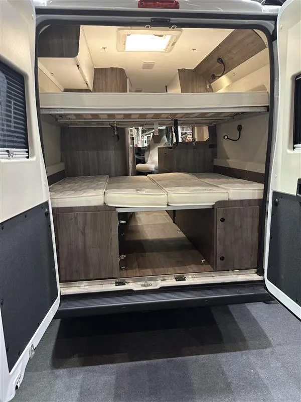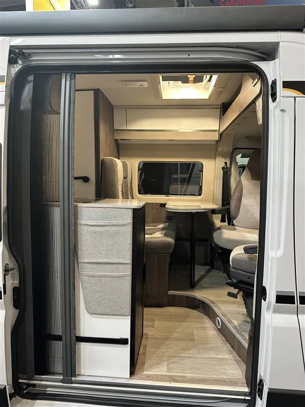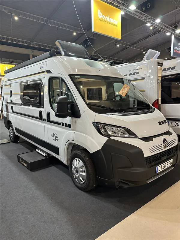 Este modelo Benimar Benivan B120 UP es una furgoneta camper de 4 plazas para circular y dormir, compacta (5,99 m de longitud) y bien equipada.