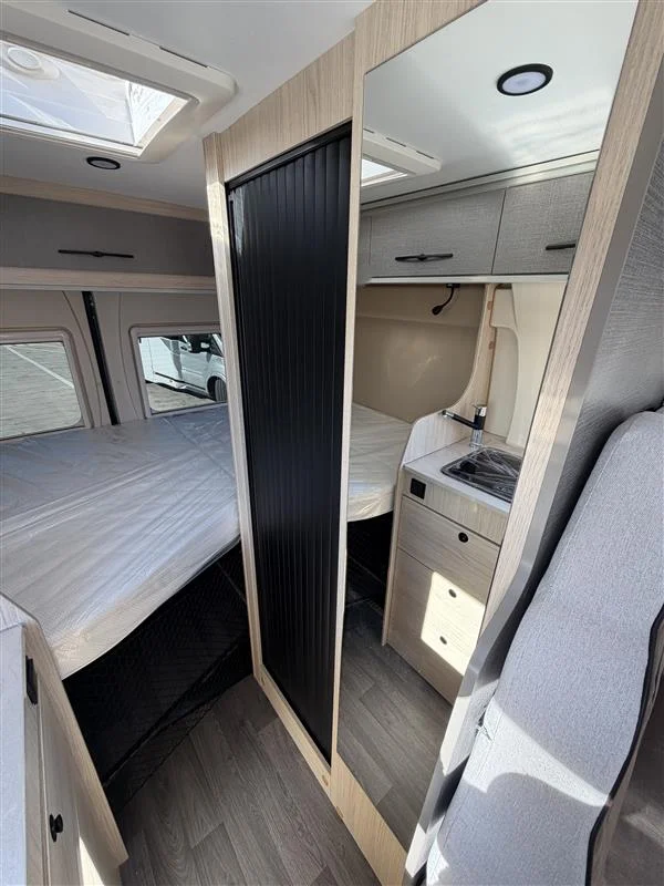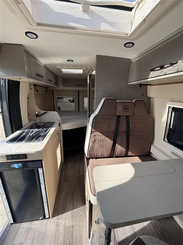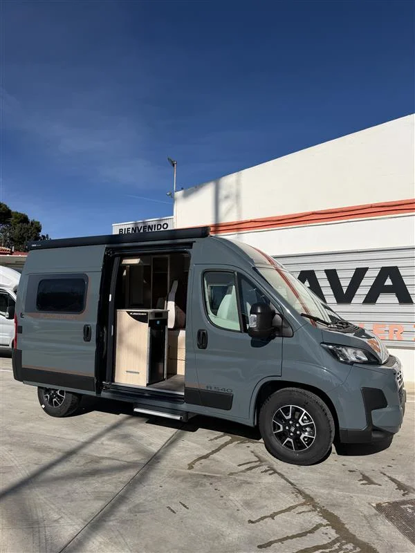 La Randger R540 es la furgoneta‑camper más compacta de la gama de la marca Randger, ofreciendo una gran maniobrabilidad gracias a sus pocos más de 5,4 metros de longitud, sin sacrificar equipamiento y confort.