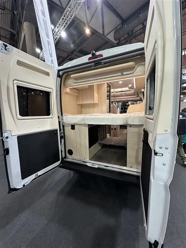 • Salón convertible + cama trasera (layout adaptado)