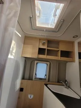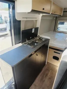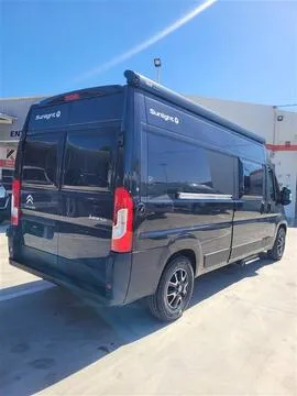Camper van compacta y ágil de la gama Sunlight Cliff, sobre chasis FIAT / Citroën 2.2 Multijet 140 CV EURO 6 con cambio manual. Diseñada para viajes cómodos en pareja o con 4 plazas homologadas.