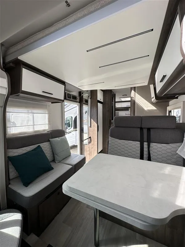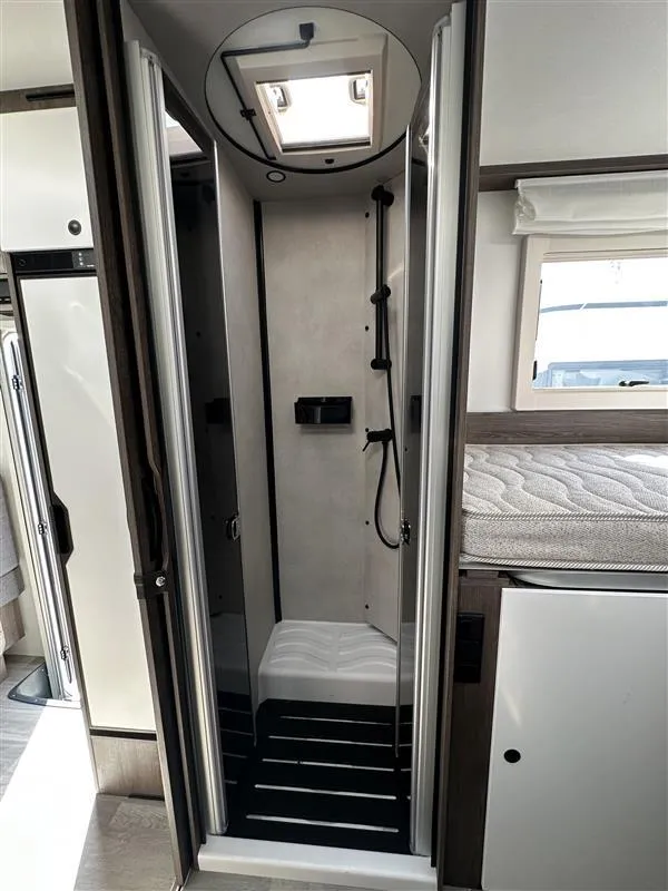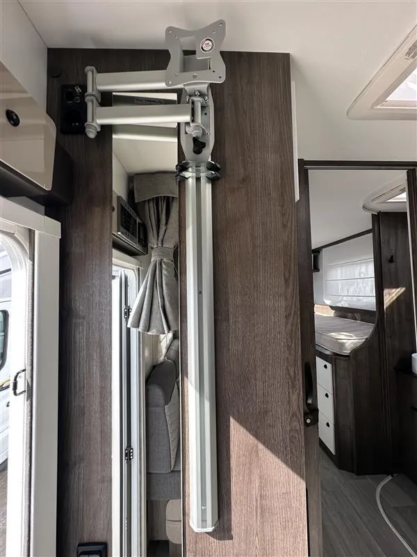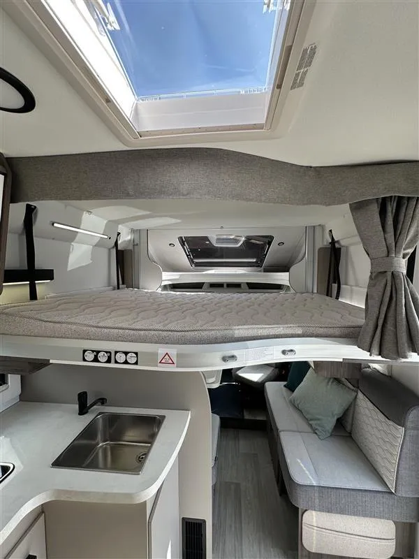 Cama basculante eléctrica sobre el salón (drop‑down) para 2 personas adicionales, lo que amplía la flexibilidad de dormir.