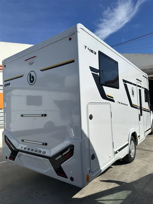 La Benimar Tessoro 463 es una autocaravana perfilada de gama media‑alta, montada sobre chasis Ford, con longitud de alrededor de 7,35 m, homologada para 4 personas. Esta versión, con cambio automático y motor de 165 CV y el Pack Plus, está destinada a ofrecer un nivel de confort elevado, buena habitabilidad para cuatro personas, y carga útil suficiente dentro de los 3.500 kg de MMA.
