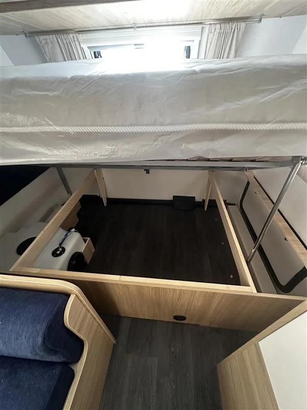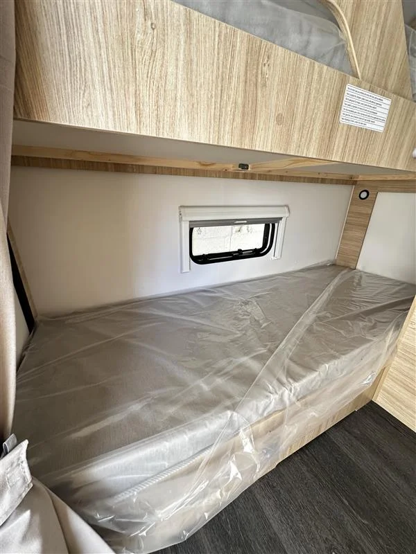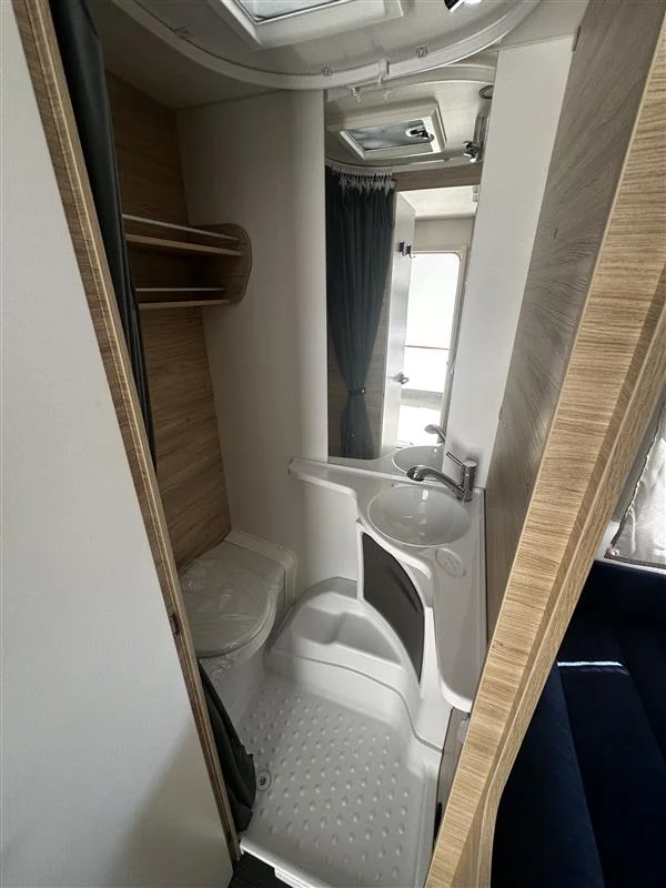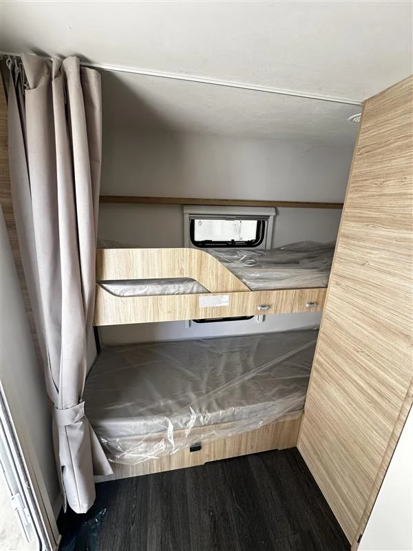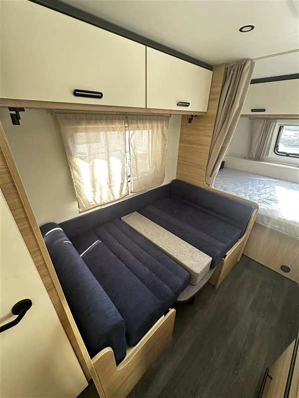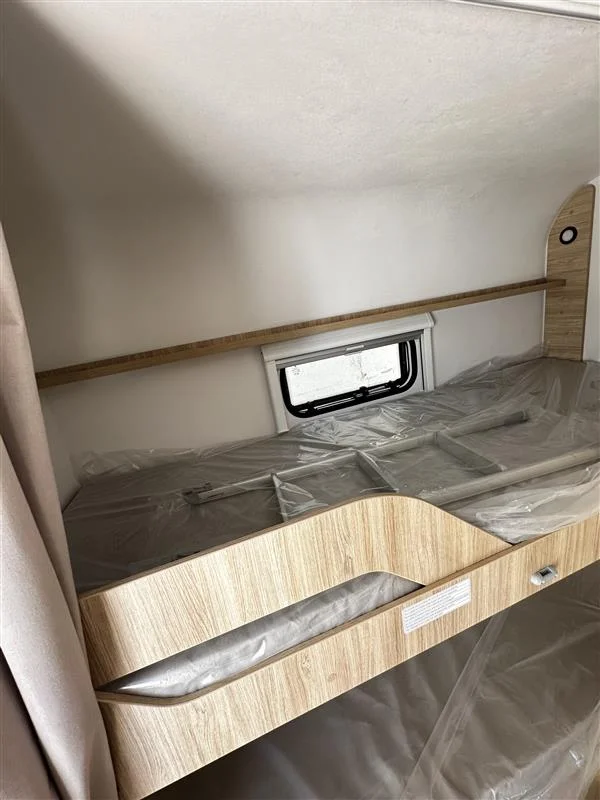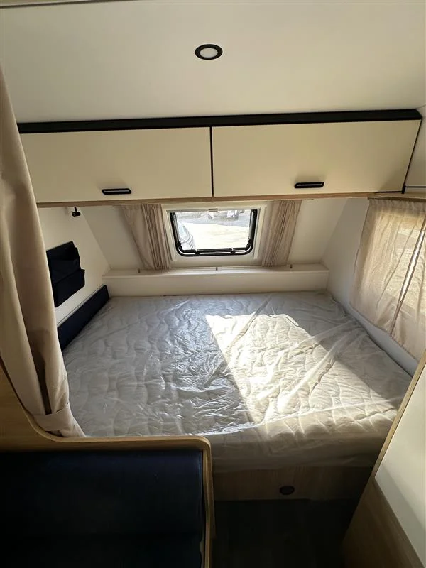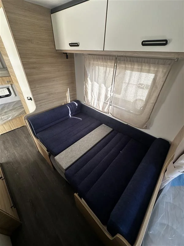 La Sterckeman Easy 490PE es una caravana familiar de 3 ambientes diseñada para viajes con hasta 6 personas, con una distribución cama fija frontal + salón convertible + literas traseras, cocina funcional, baño completo y pre‑instalación para aire acondicionado y TV. Perfecta para escapadas largas sin renunciar a confort.